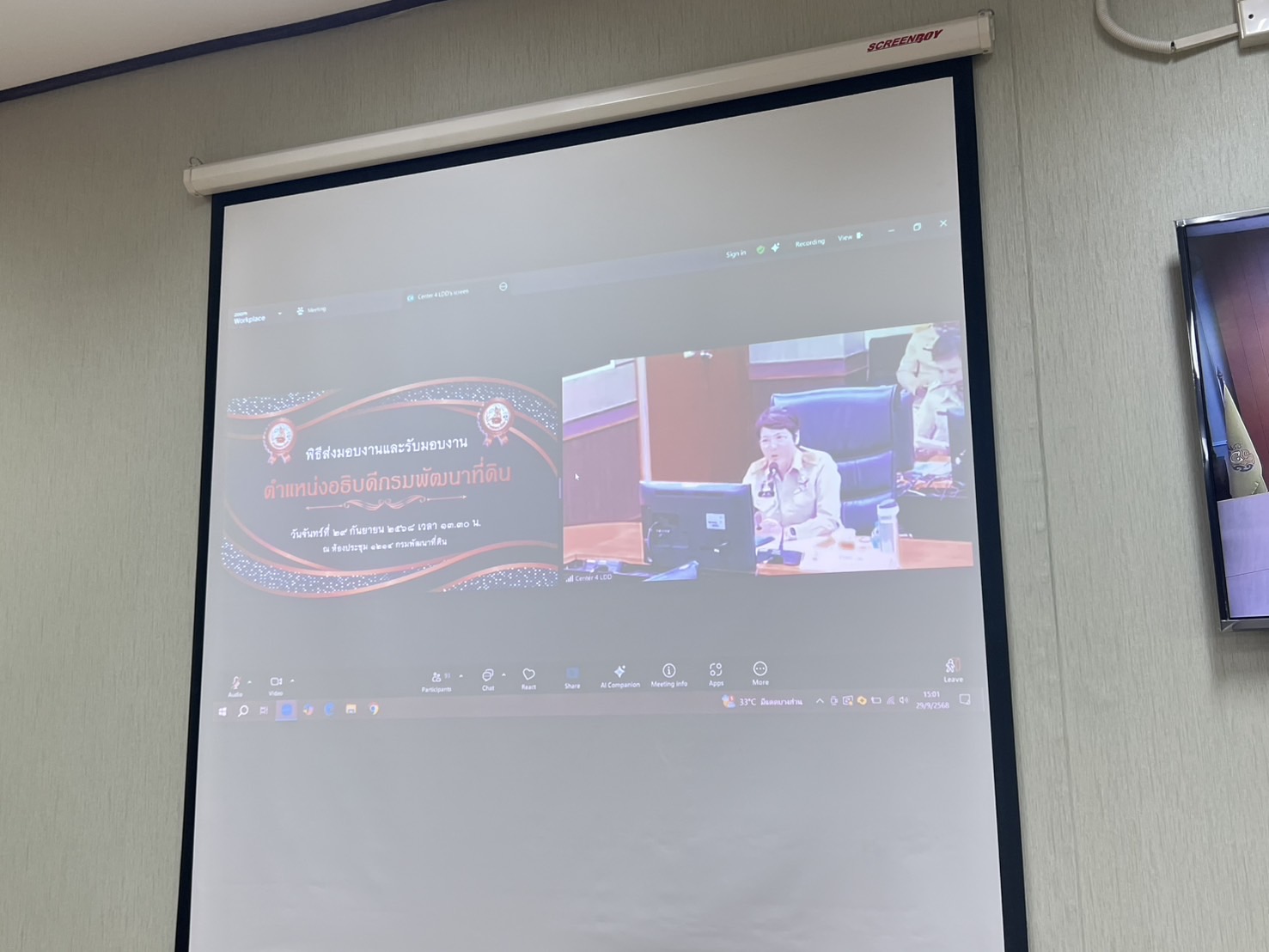 ![]() | ร่วมประชุมพิธีการส่งมอบงานตำแหน่งอธิบดี สานต่อนโยบายพัฒนาที่ดินเพื่อเกษตรกรและประชาชน (Application Zoom Meeting) (29 ก.ย. 68) ![]() |